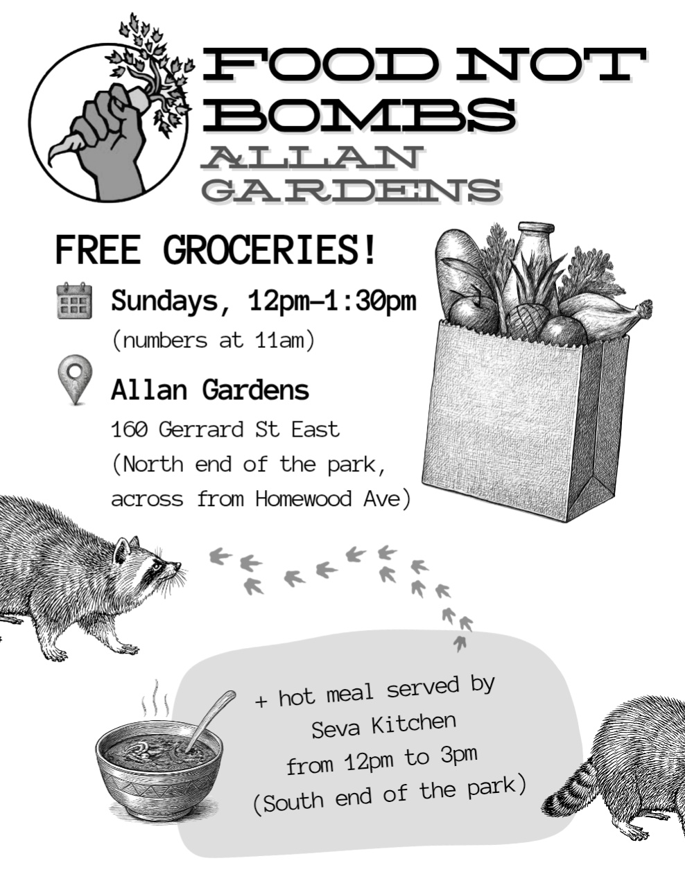 Allan Gardens groceries w/ hot meal by Seva Kitchen
